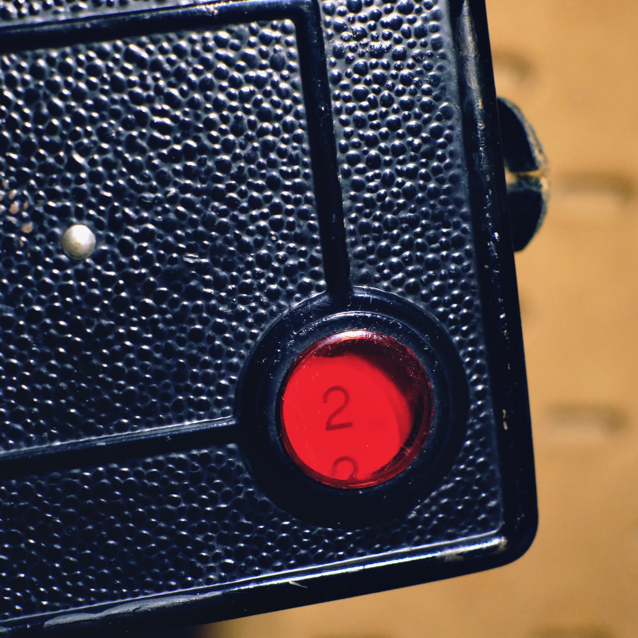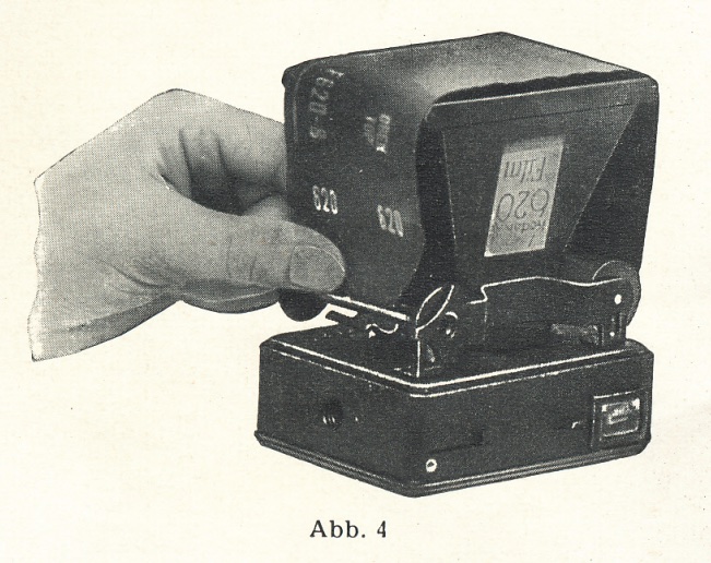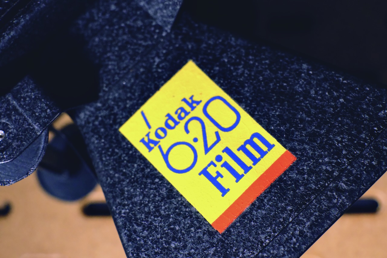 This camera uses Kodak’s proprietary 620 film, supposedly to make the camera “more compact”. The film itself is, in fact, normal 120 film rewound onto a smaller metal spool.