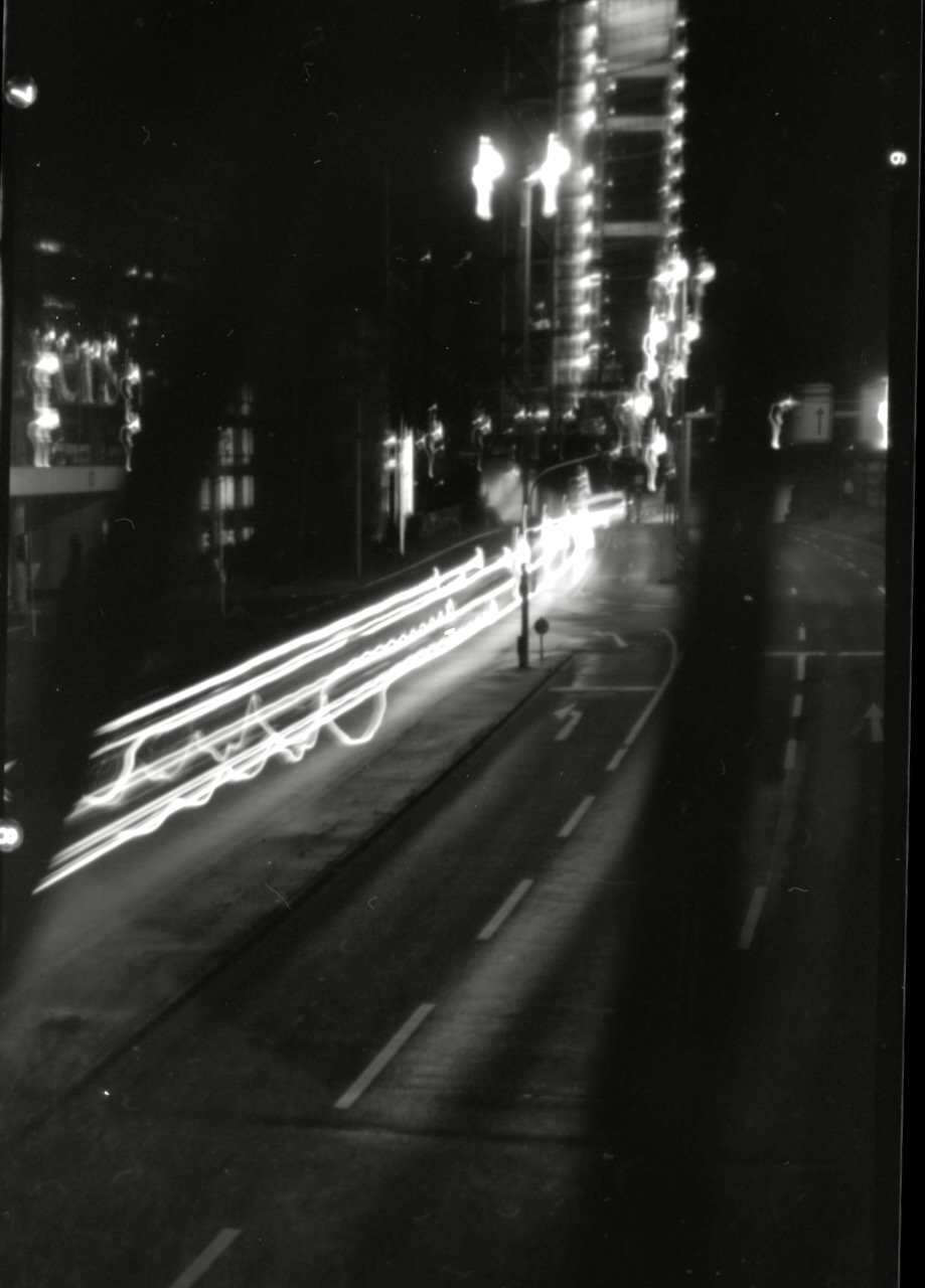 The camera barely has any controls. You can choose between a shutter speed (between 1/30 and 1/45 depending on the lunar phase) and manual exposure with a cable release. For the aperture, you have a choice between small, medium and large which roughly translates to “from f/11 to f/22”.