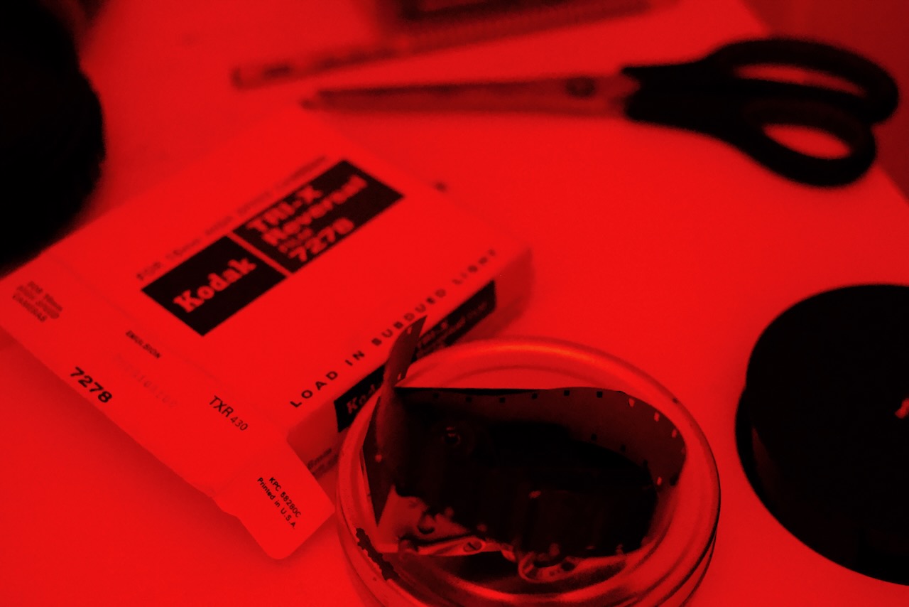 To unload the film after shooting, you pull of the side of the camera, and the film sort of falls out.