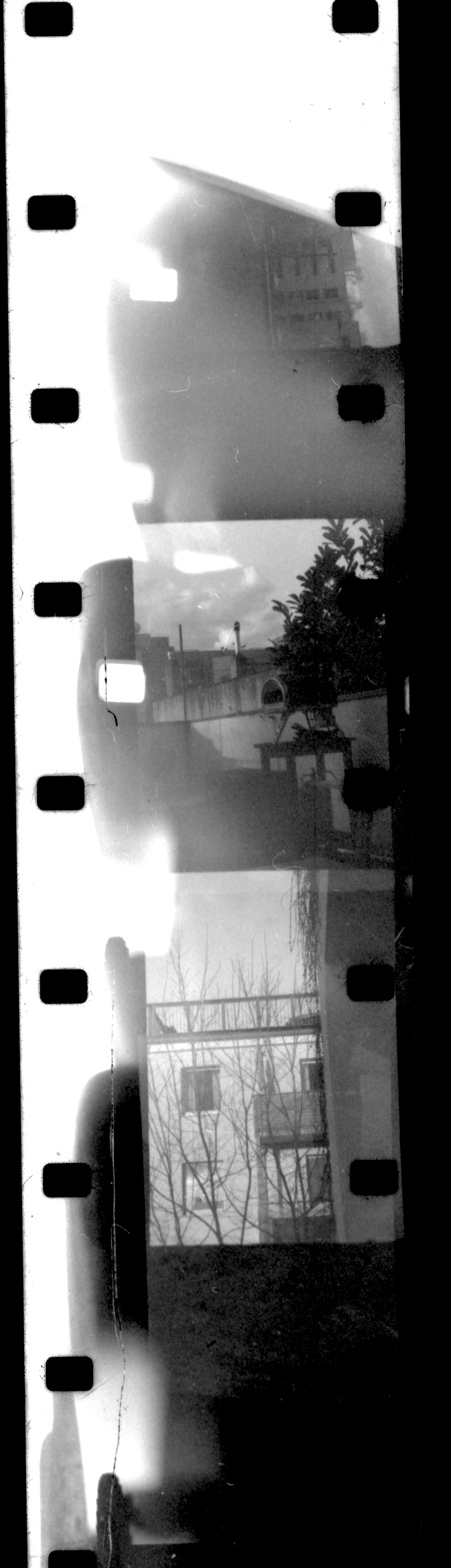 The camera is surprisingly simple and robust. There are no clever mechanisms, springs to wind or knobs to turn except for the aperture control and film advance. The lever is not as much a shutter release as a shutter trigger - you can press it as many times as you like and it will overlay the frames on top of each other. There is no focusing mechanism either. There’s an extremely tight nob to adjust the shutter speed, with a choice of 1/25, 1/50 and 1/100.